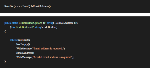We can also use an extension method to extract groups of common validations with custom messages.